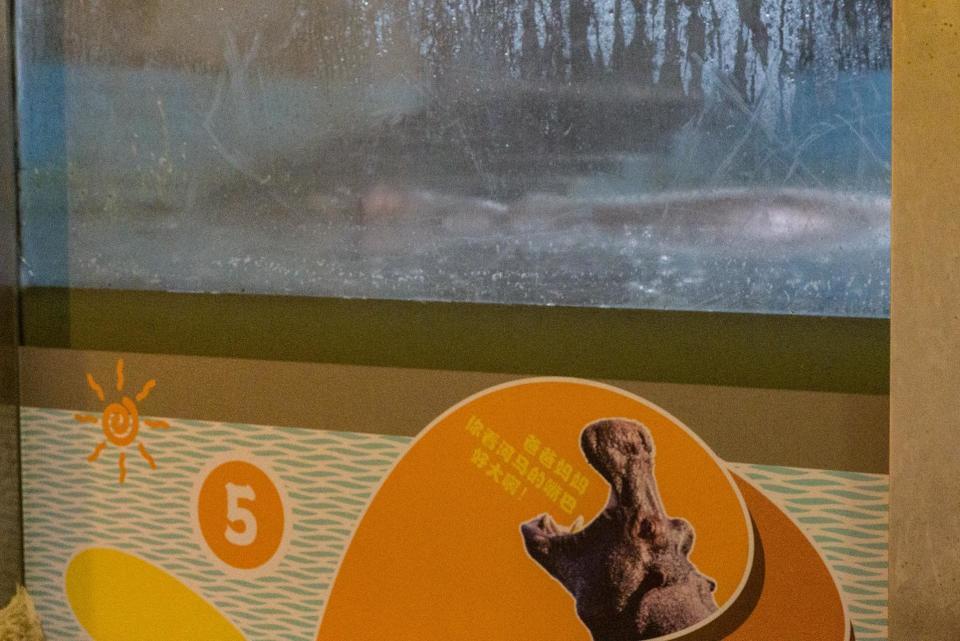 河马的吃喝拉撒如何解决呢?看着玻璃外墙上斑驳的印记,不少游客或许能猜到:河马大部分时间都在“温泉”中度过,包括排泄。当然,进食仍在水池上方的平台上进行,那个区域也铺设了地暖。