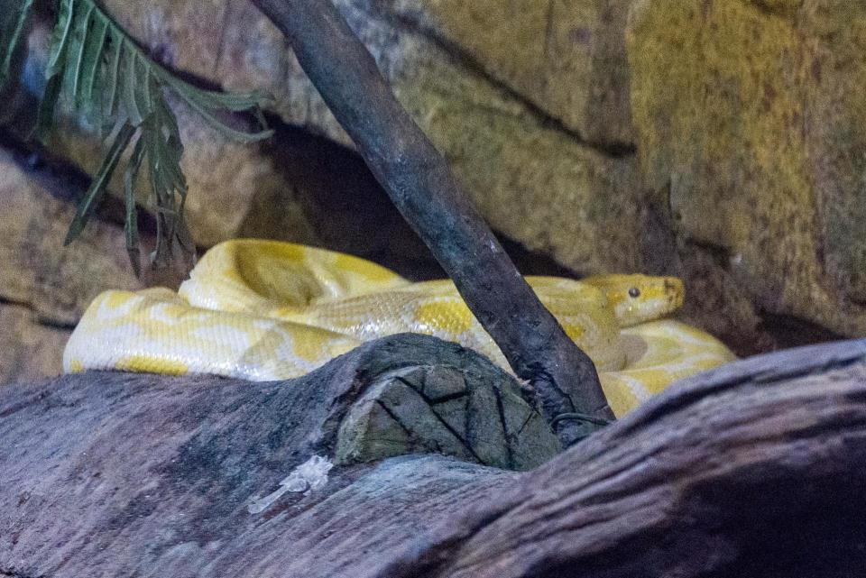 一走进爬行馆,记者终于感觉回到了人类的“舒适区”。馆内有黄金蟒、蜥蜴、苏卡达陆龟、鳄龟等多种爬行动物,它们的取暖方式包括暖气片、取暖灯、空调等。整个馆内非常温暖,记者体感温度大约在25-26摄氏度。