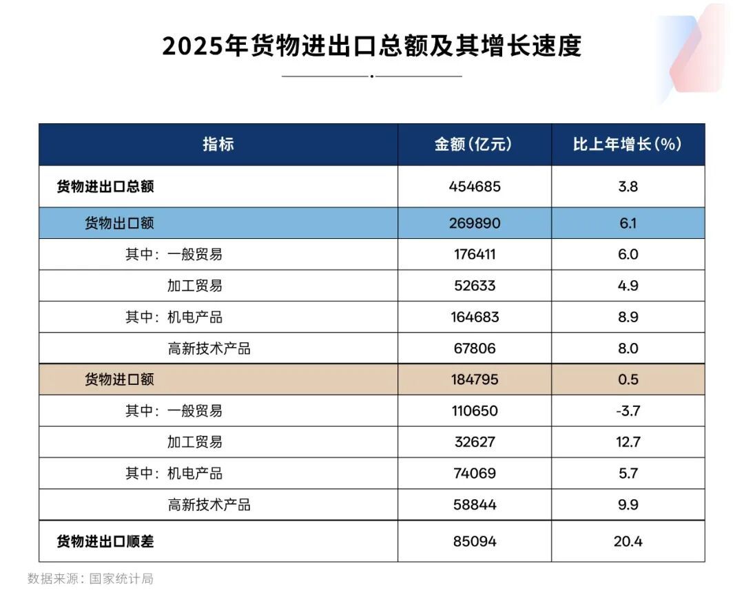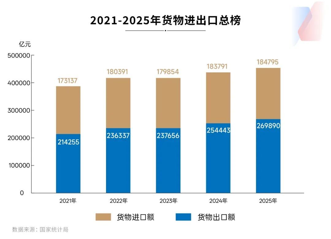 2025年,在外部环境复杂多变的背景下,我国外贸进出口规模首次突破45万亿元人民币,创历史新高。货物和服务净出口拉动国内生产总值增长1.6个百分点。